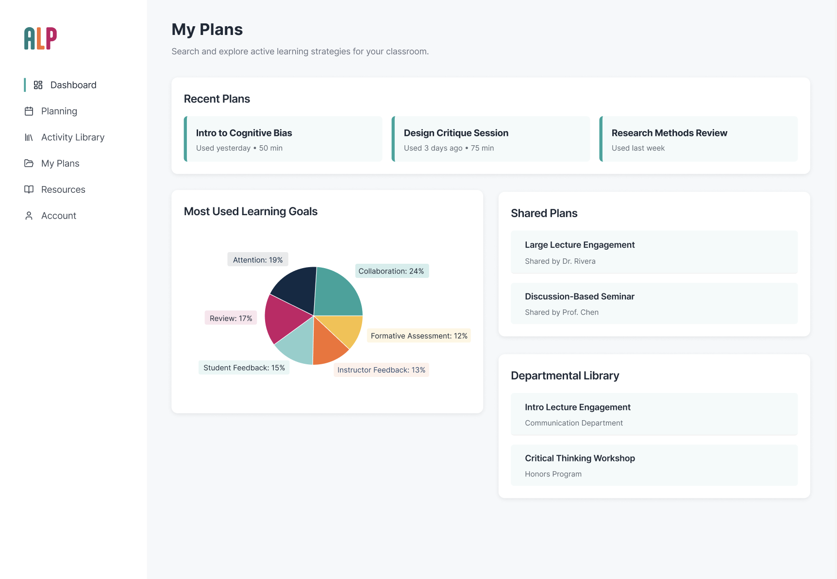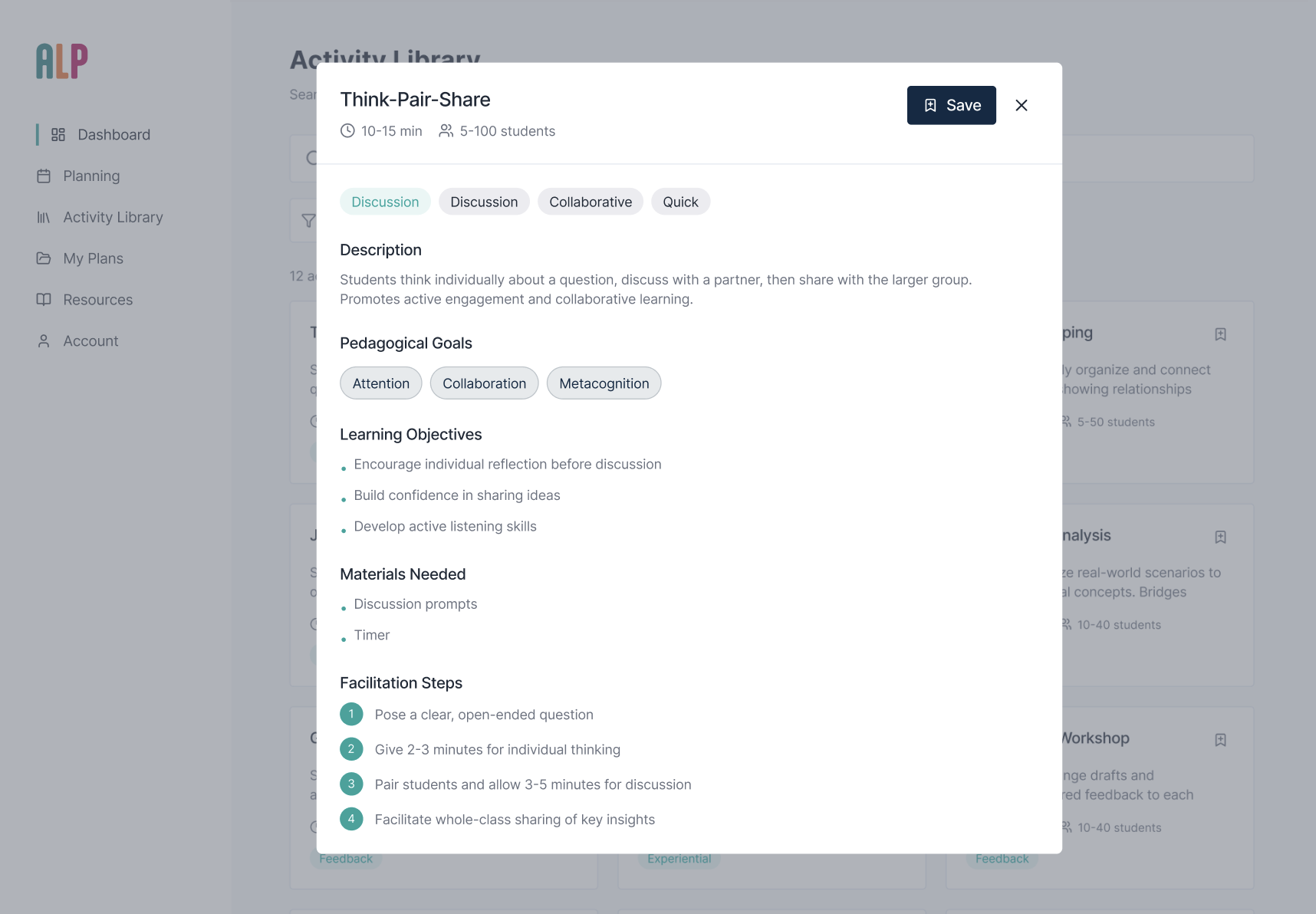 Pivot: The interviews confirmed that 'fluff' was the enemy of adoption. Users didn't want long academic justifications; they wanted a interface that surfaced high-impact metadata (prep time, group size, and learning goals) instantly. So I changed the project scope from a website to a dashboard.