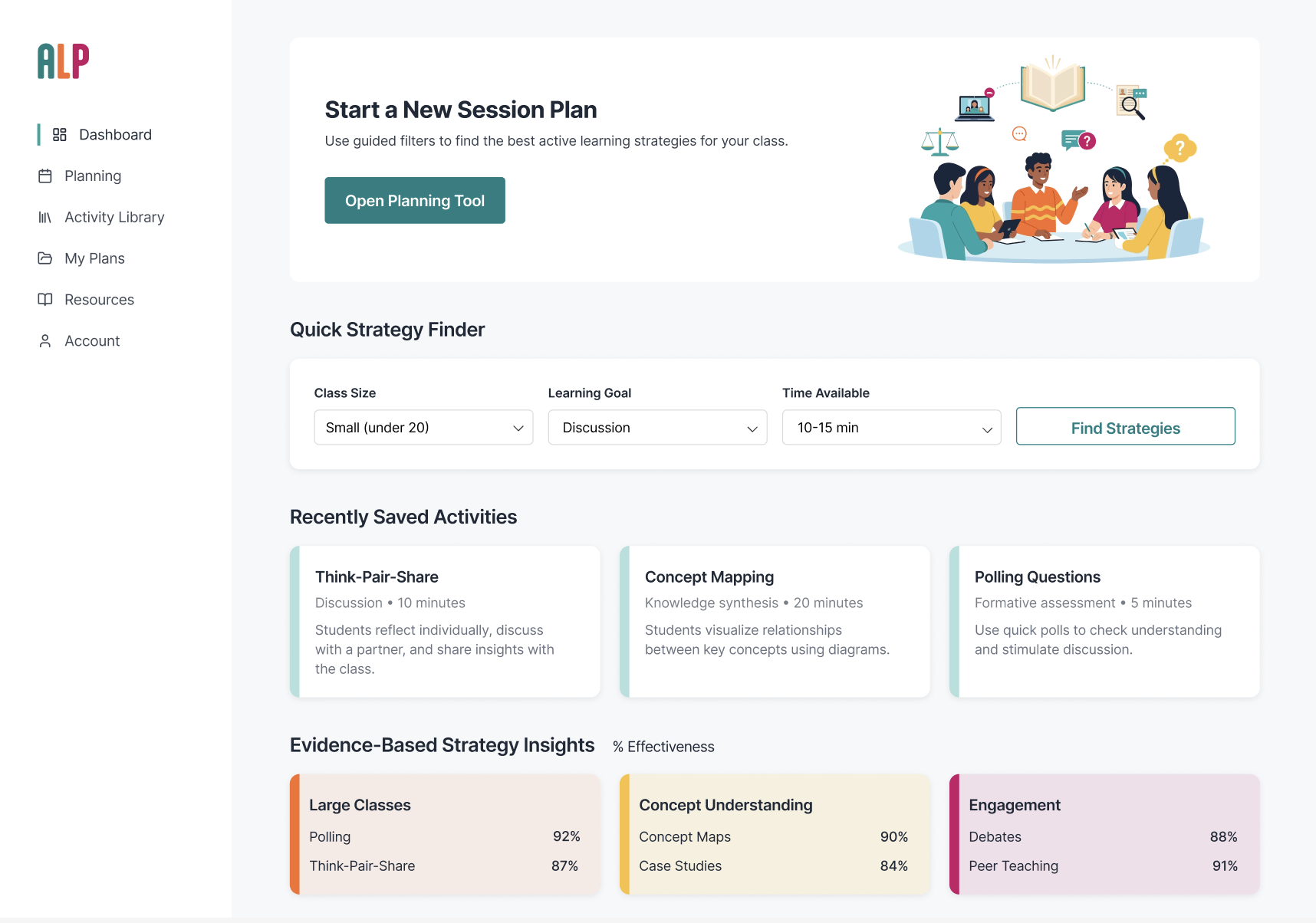 I identified a need to transform this vast library into a tool that reduces friction by allowing instructors to filter strategies based on the real-world constraints of their specific classrooms: size, time, and goal.