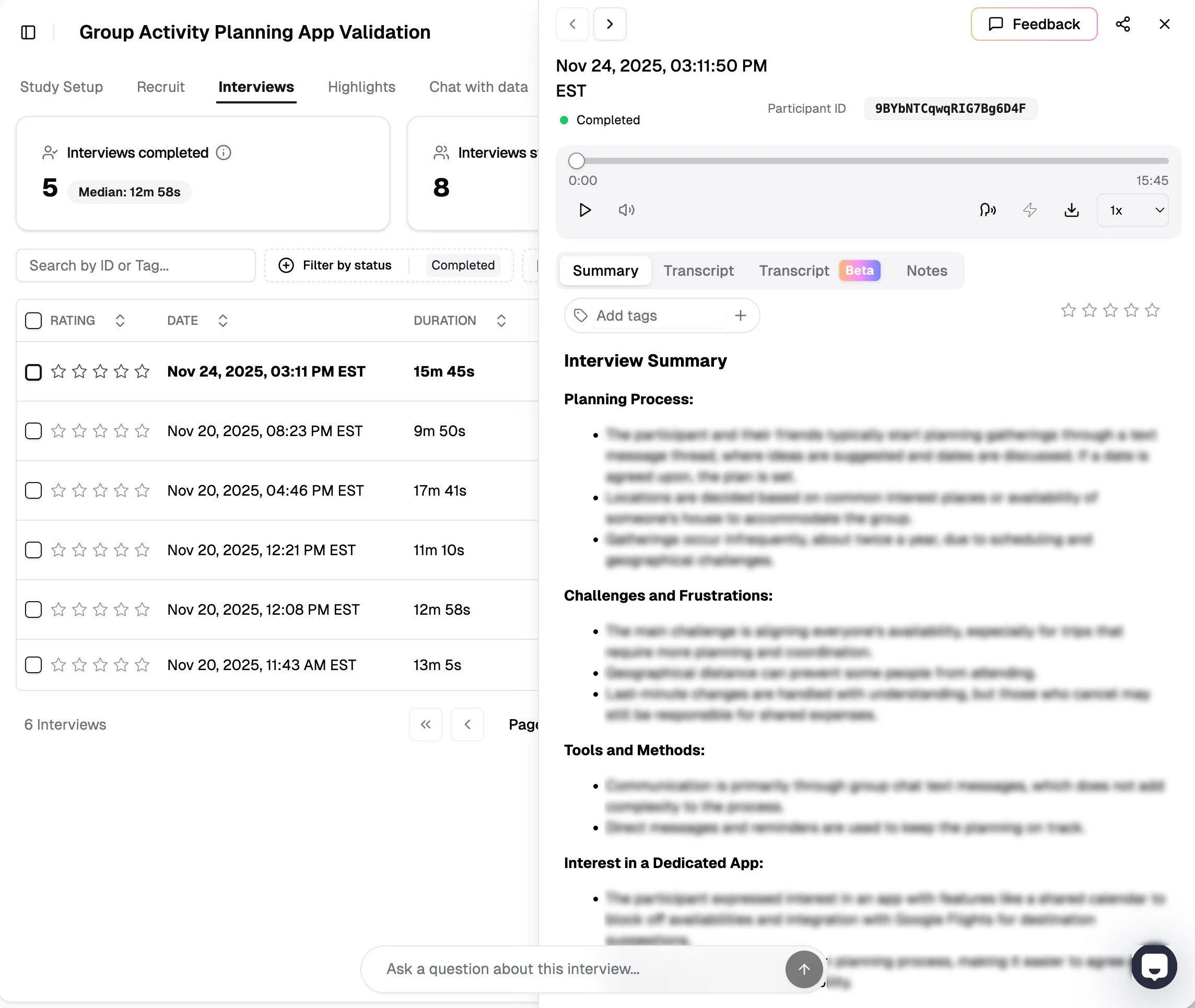 To move past my own assumptions, I conducted a series of interviews with fellow TAs. I utilized Whyser, an AI-powered research tool, to analyze these conversations and extract core themes.